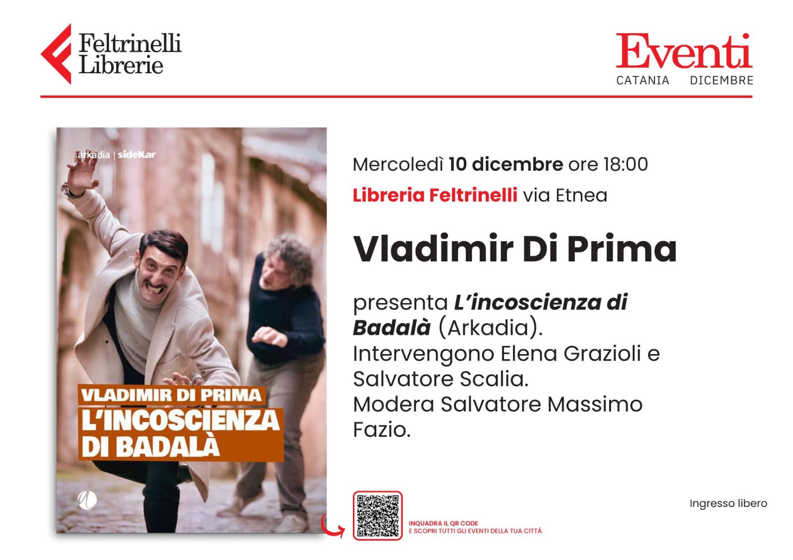 Oggi 10 dicembre 2025 alle ore 18, Elena Grazioli, Salvatore Scalia e Salvatore Massimo Fazio presenteranno “L’incoscienza di Badalà” – Arkadia editore