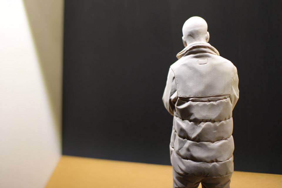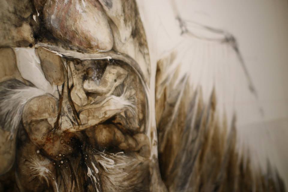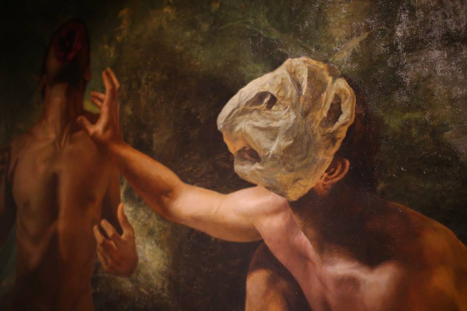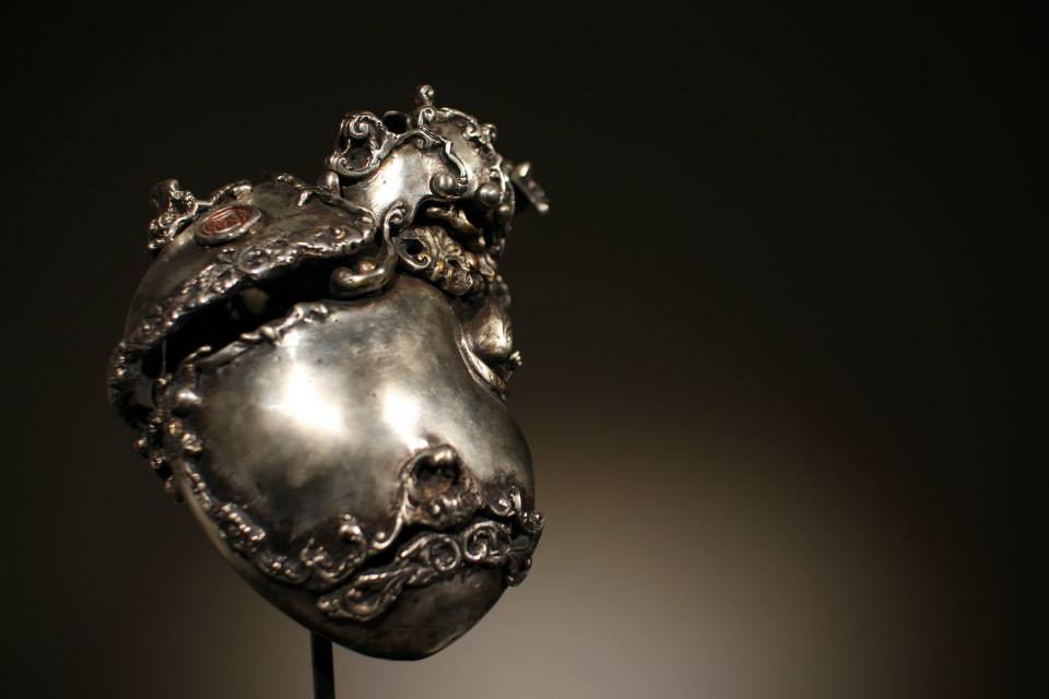 Alessandro Reggioli, Safety Heart Armour (2013) Uno stralcio da “Padre nostro che sei in terra” di Alberto Agazzani (dal catalogo “Ad Imaginem Suam” – NFC Edizioni)Nella nostra modernità più estrema e perversa il corpo è stato trasformato in una vera e propria macchina sensoriale, un oggetto privo di dignità e bellezza, rappresentazione di una dimensione sordida e altrimenti indicibile che con determinata, lucida e sistematica ostinazione tenta (inutilmente e nel migliore dei casi ridicolmente) di negare ogni mistero ed ogni barlume di metafisica. A noi queste sterili ed infantili provocazioni non interessano. Questa mostra, di contro, vuole dimostrare la varia e variopinta continuità con un passato millenario di una storia, quella della rappresentazione della figura umana, intrisa di Bellezza e di sempre nuove espressività e linguaggi. Il percorso espositivo ha simbolicamente come fine e nuovo inizio la grande crocifissione (laica?) di Davide Puma. Un dipinto eccezionale nel novero espressivo del pittore, ma significativo per intendere la continuità ininterrotta del legame fra arte e mistero del sacro, anche e soprattutto in una visione laica. L’uomo crocifisso (o risurrendo) di Puma non ha alcuna delle tradizionali caratterizzazioni e non contiene alcuno dei simboli legati alla figura di Cristo (a cominciare dalla croce, ma poi chiodi e stigmate, segni della Passione, corona di spine, ferita al costato, cartiglio). Potrebbe essere il figlio di Dio, ma altresì uno delle migliaia di uomini ai quali è toccata la stessa terribile fine, in passato come, purtroppo, ancora ai nostri giorni ed ai quali è stata donata, che vi credano o no, la promessa una vita eterna dopo la morte. Una metafora laica di quella stessa sofferenza disumana e risurrezione patita da Cristo, uomo seviziato in vita, morto in croce eppure da millenni in grado di donare speranza e sollievo grazie a quella promessa, sebbene la sua rappresentazione sia tra le più terrificanti della storia dell’iconografia. L’uomo di Puma potrebbe anche rappresentare una metafora dell’artista stesso, creatore a sua volta, eternamente tormentato e “inchiodato” senza chiodi ad una tela (o ad un blocco di marmo) resa oscura da una faticosa ed ininterrotta ricerca espressiva che non trova mai pace definitiva e ri-soluzione finale. Il Cristo-uomo-pittore (o scultore, nulla cambia) di Puma trova corrispondenze, sebbene meno ambiguamente caratterizzate, nei lavori di tutti gli artisti qui invitati e convenuti, tra mimesi ed invenzione.