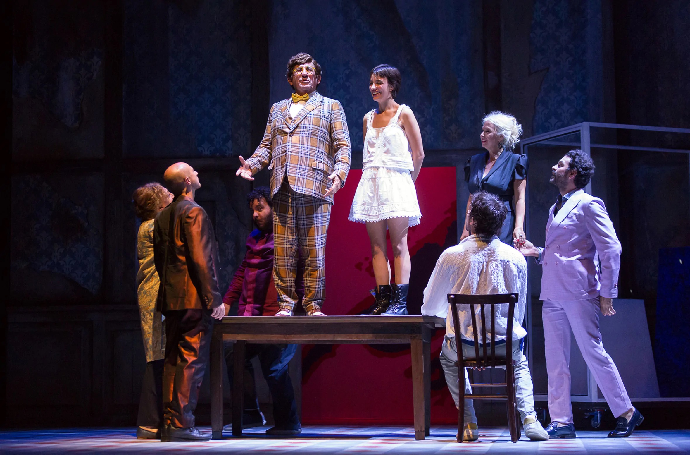 Animeranno le scene, interpreti e personaggi (nelle foto di Filippo Venturi), con Claudio Casadio (Fabrizio): Loredana Giordano (Flamminia, nipote di Fabrizio, vedova); Valentina Carli (Eugenia, nipote di Fabrizio); Leone Tarchiani (Fulgenzio, amante di Eugenia); Maria Lauria (Lisetta, cameriera); Lorenzo Carpinelli (Roberto, gentiluomo); Damiano Spitaleri (Tognino, servitore); Alberto Gandolfo (Ridolfo, amico di Fabrizio e Clorinda, cognata di Fulgenzio).