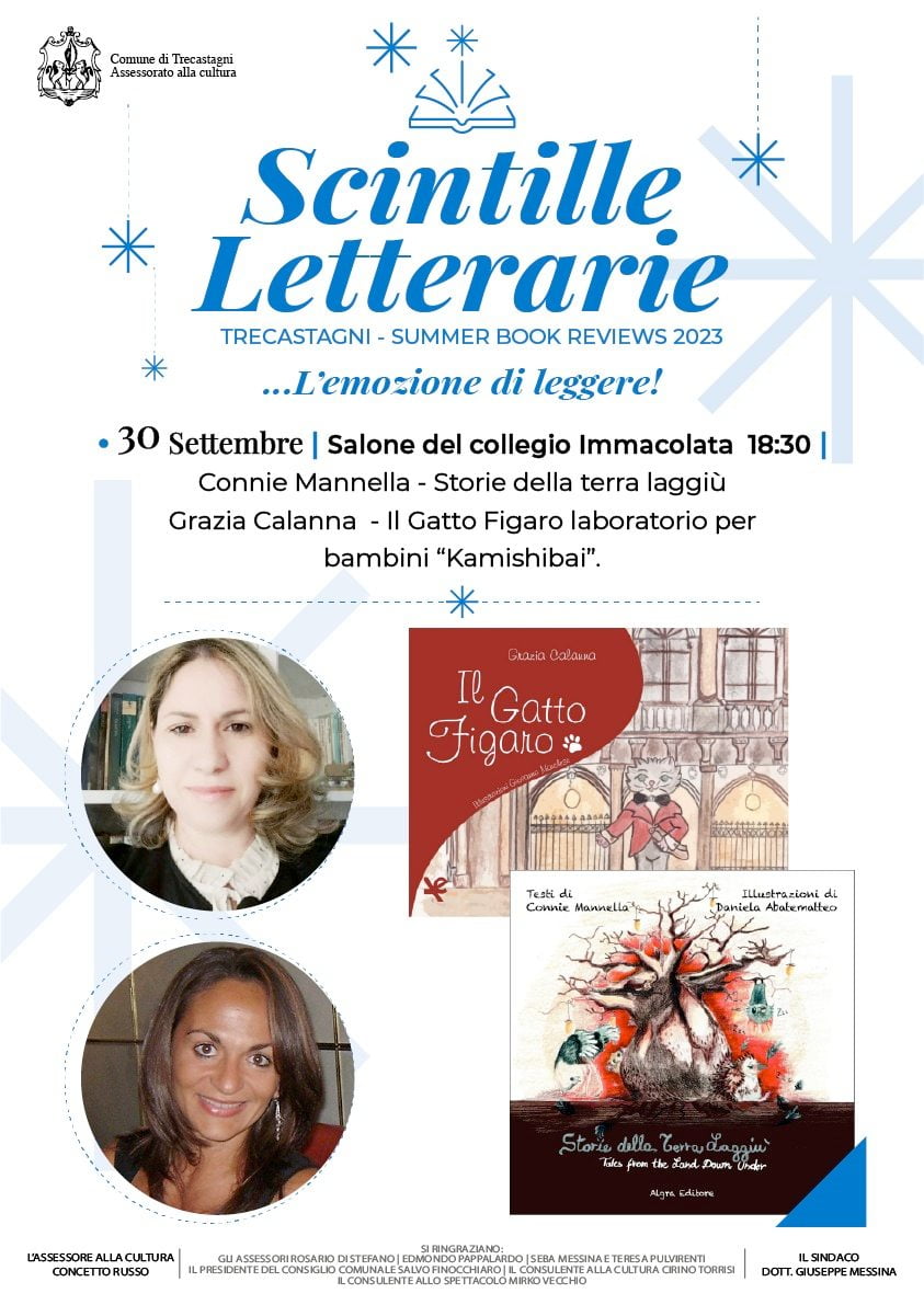Protagoniste due autrici pubblicate da “Algra” di Alfio Grasso: Connie Manella con il libro “Storie della Terra Laggiù”, illustrato da Daniela Abatematteo; e Grazia Calanna con il libro “Il gatto Figaro”, illustrato da Giovanna Marchese.