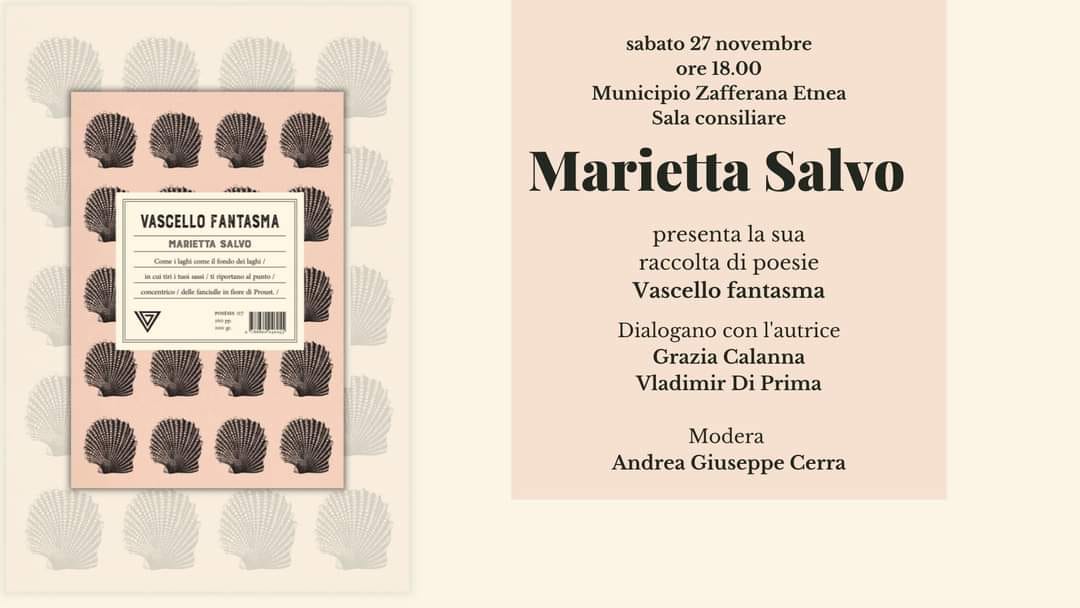 «C’è un tramonto e giardini/ nascosi in verticale./ Ci stacchiamo dal molo lenti/ come bestioni in letargo./ Inizia cogli occhi la grande ricerca/ del comandante. E ricostruire/ la mappa e il diario di bordo.», versi di Marietta Salvo per introdurre la lettura di Vascello fantasma libro, edito da Giulio Perrone, nella collana diretta da Giorgio Ghiotti, la cui scrittura ci risucchia (questa è la sensazione avuta leggendo) dentro la pagina che diventa luogo (ora preciso, ora sconfinato), che diventa terra d’origine (“bozzolo d’incanto”), che diventa memoria (ora consolatoria, ora dolente), che diventa spazio di salvezza nella ferma consapevolezza della morte come “insostituibile misura del vivere”, osserva Antonio Di Grado nella nota introduttiva, dell’amore incondizionato come misura di redenzione, aggiungiamo. Marietta Salvo, come il celebre capitano (evocato dal titolo della raccolta) naviga fino al giorno dell’equità, scioglie la “trama dei silenzi”, ritorna, risogna “cammini sull’acqua”, naviga in un mare autobiografico che abbraccia un’intera esistenza, ritrova le tracce, attraversa rotte di un tempo incantevole, odoroso, doloroso, fino ad approdare (fissare) l’universale rotante, “L’incongrua onniscienza del vuoto/ che sale a momenti la cui persistenza/ colpisce”.