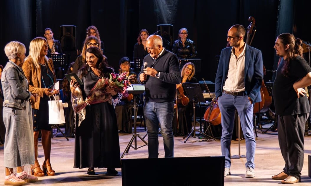 Alla conclusione dello spettacolo, Mimì Scalia, direttrice artistica del Premio Teatrale Nazionale “Angelo Musco”, presenti Alfio Zappalà, Sindaco e Vice Sindaco di Milo, Alfio Cosentino e Concetta Cantarella (nella foto di Lorenzo Mongioi), ha consegnato all’attrice Lucia Sardo il riconoscimento “Sicilianità 2025 – XIX Premio Musco” con la seguente Motivazione: “Con una presenza scenica ipnotica e una capacità di immedesimazione senza pari, Lucia Sardo, ha saputo portare sul palco e sullo schermo personaggi complessi e affascinanti, dando vita a performance che hanno magnetizzato il pubblico. La sua dedizione e passione per l’arte della recitazione sono evidenti in ogni sua interpretazione, e la sua capacità di trasmettere emozioni e sentimenti autentici ha reso i suoi personaggi indimenticabili. Con questo premio, vogliamo riconoscere il suo straordinario talento e la sua contribuzione significativa al mondo del teatro e del cinema”.