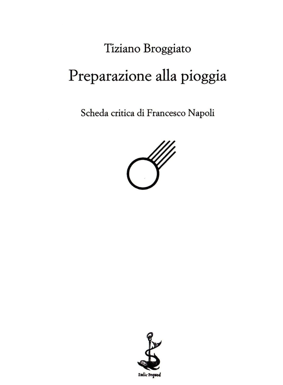 Sulla scia del motivo eliotiano – in my end is my beginning – il senso della Preparazione alla pioggia di Tiziano Broggiato (Italic Pequod, 2015) sembra delinearsi a partire dall’ultimo testo che chiude le sei sezioni della raccolta (prima del poemetto Ascoltando Marylin riproposto in una restaurata veste formale): Sessantesimo. Qui ci troviamo di fronte, come nell’explicit sereniano di Stella variabile, a una soglia composta da «allegorie, confusi ghiacci / alla deriva» che il soggetto poetante è chiamato a oltrepassare, dando così forma a quell’«archetipo del viaggio» che Francesco Napoli nella nota critica finale riconosce a ragione come cifra distintiva dell’opera poetica di Broggiato.